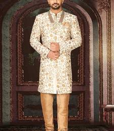 Cream dupion arts silk straight design with emb all over work indo western