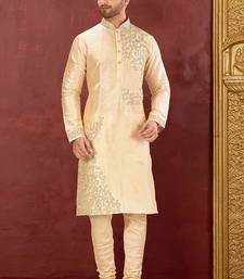 Fawn dupion art silk  kurta with computerised embroidery machine work churidar