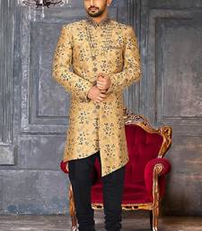 Light beige dupion arts silk anghrakha design with hand work on collar and buttons indo western