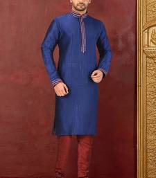 | Product Name | Navy Blue Dupion Art Silk Kurta With Machine Dk Work In Collar And Button Line Printex Work Churidar | |