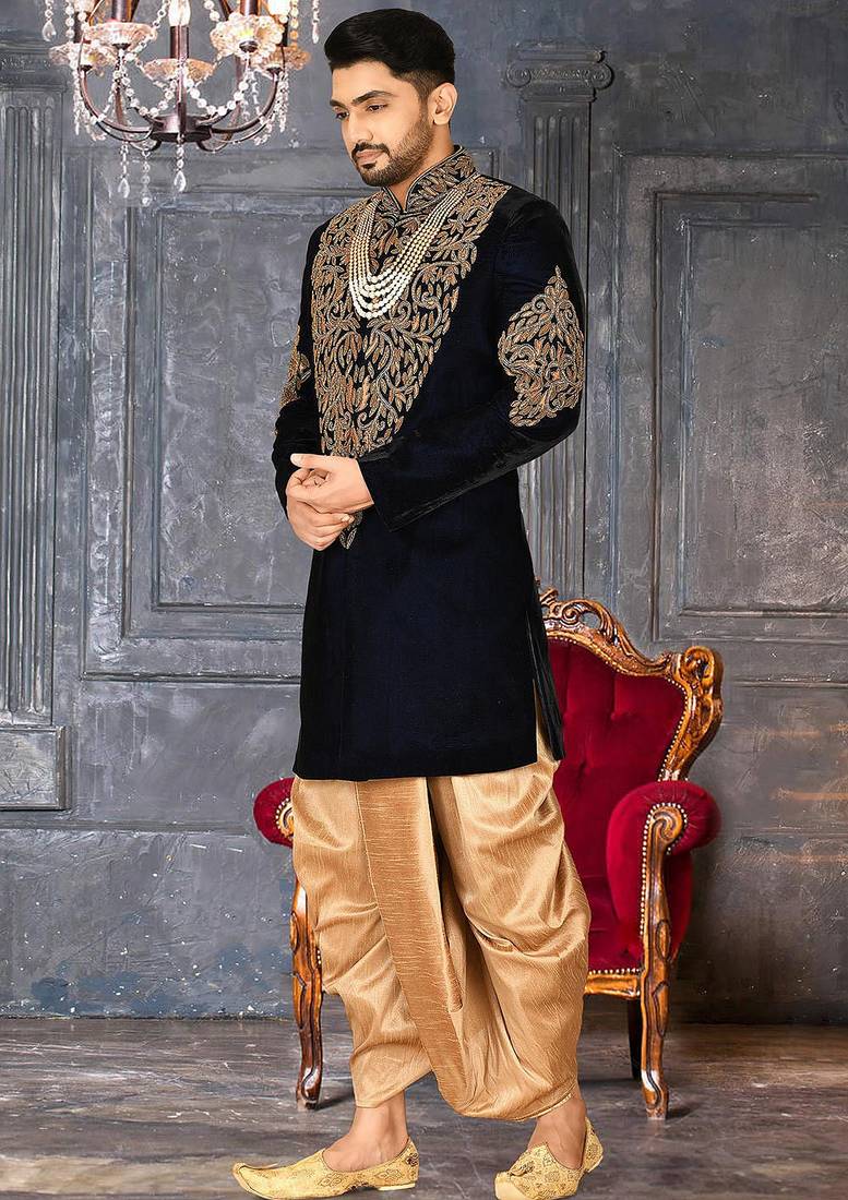| Product Name | Navy Blue Navy Blue Velvet Anghrakha Design With Hand Work On Collar, Front And Hand Indo Western | |