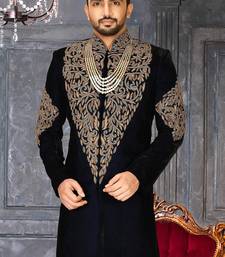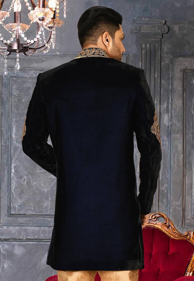 | Product Name | Navy Blue Navy Blue Velvet Anghrakha Design With Hand Work On Collar, Front And Hand Indo Western | |