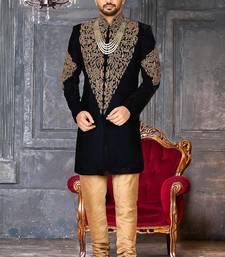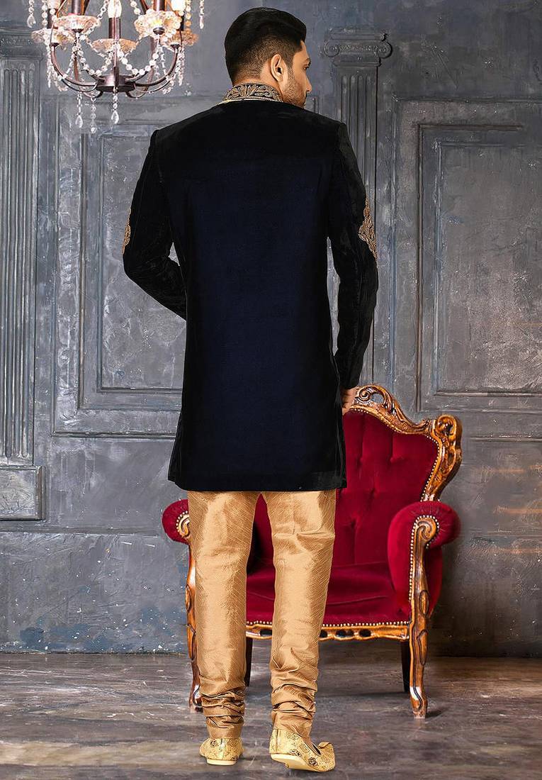 | Product Name | Navy Blue Navy Blue Velvet Anghrakha Design With Hand Work On Collar, Front And Hand Indo Western | |