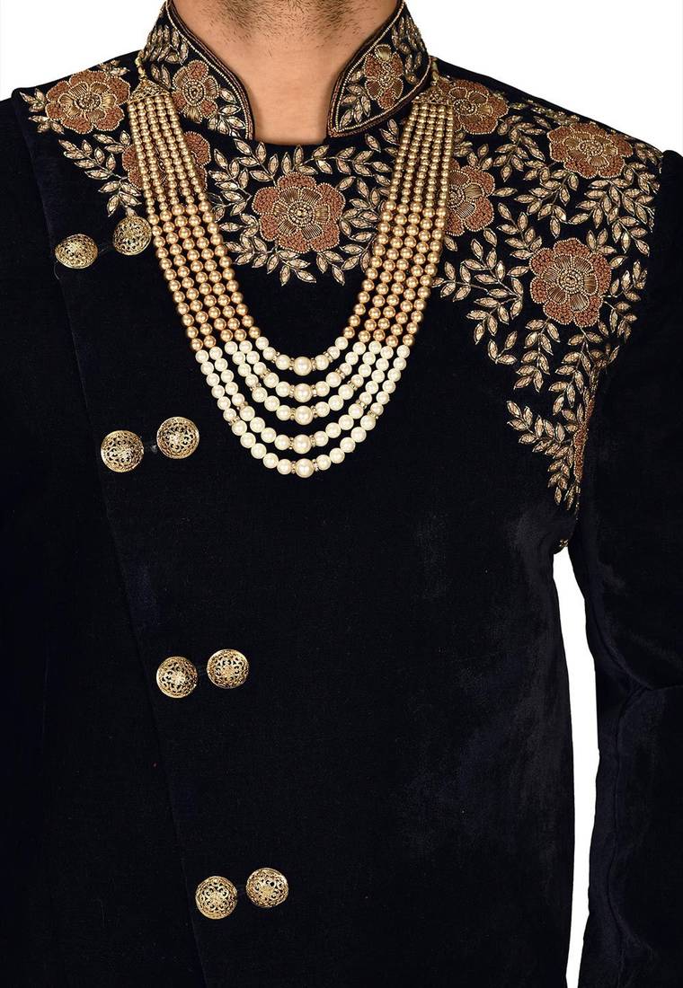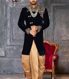 | Product Name | Navy Blue Navy Blue Velvet Anghrakha Design With Hand Work On Collar, Front And Hand Indo Western | |
