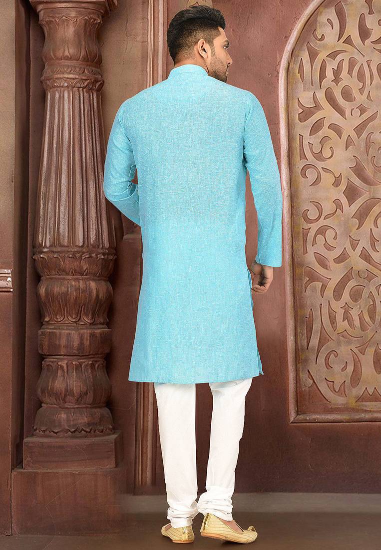 | Product Name | Sky Blue Cotton Kurta With Pattern Work&Wooden Button Churidar | |