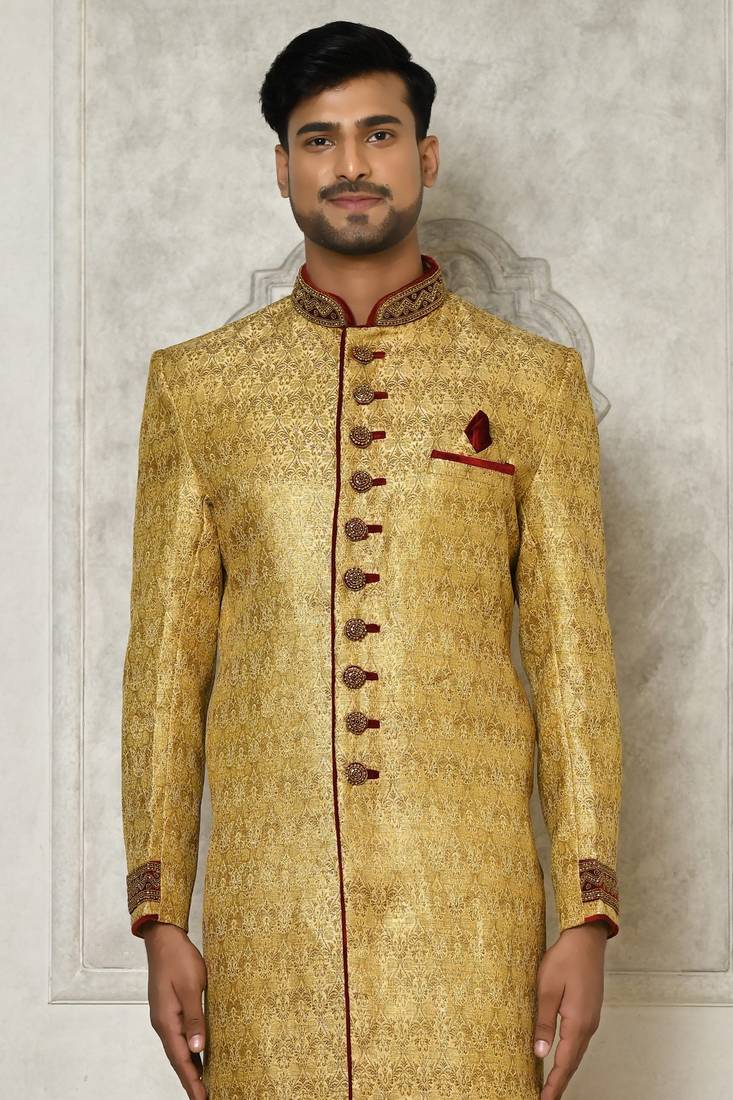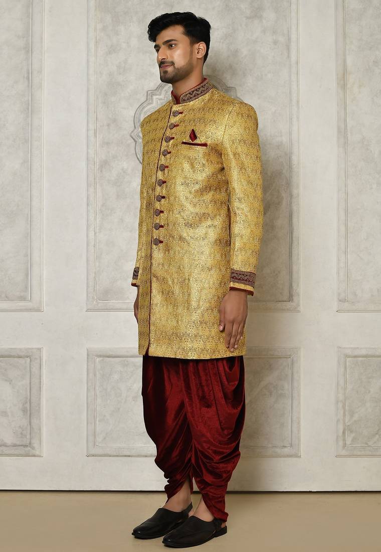 | Product Name | Teal Green Anghrakha Pattern Work With Fawn Pipe In Indo Western | |