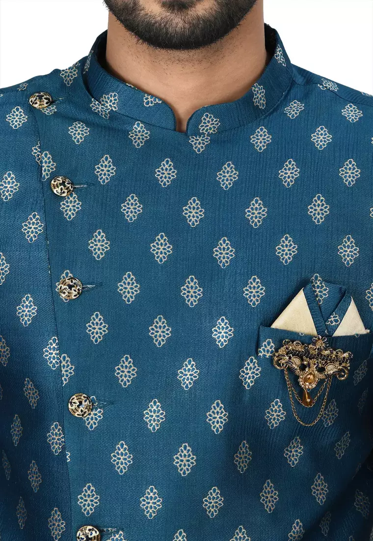 | Product Name | Teal Green Anghrakha Pattern Work With Fawn Pipe In Indo Western | |