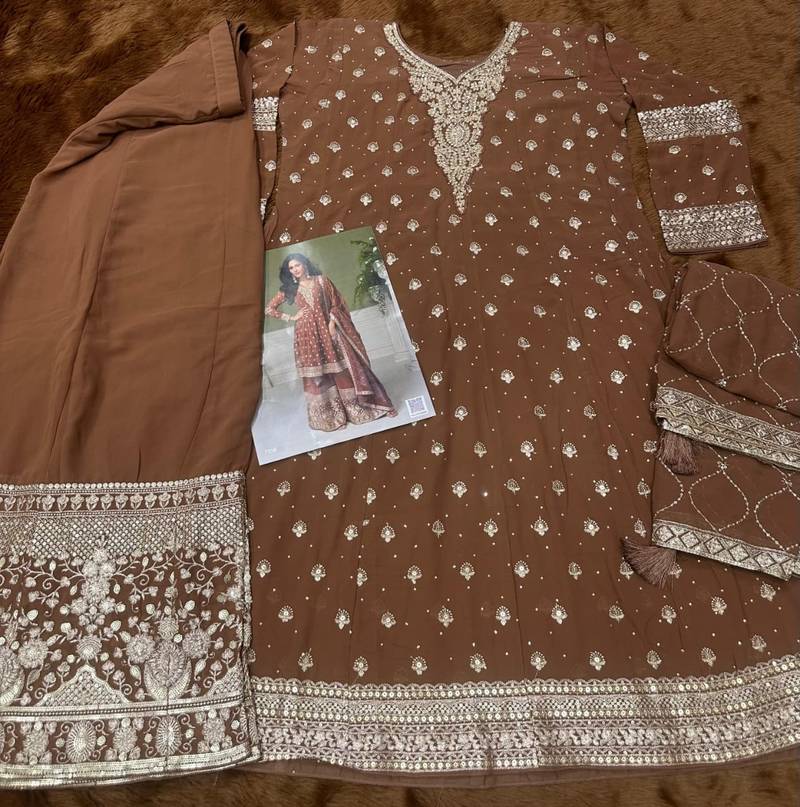 | Product Name | Brown Free Size Upto 42 Heavy Georgette Palazzo Suits | |