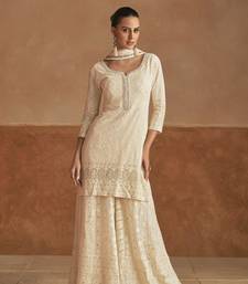 | Product Name | Off White Real Georgette Wedding Collection Full Stitched Sharara Suits Free Size Upto 42 | |