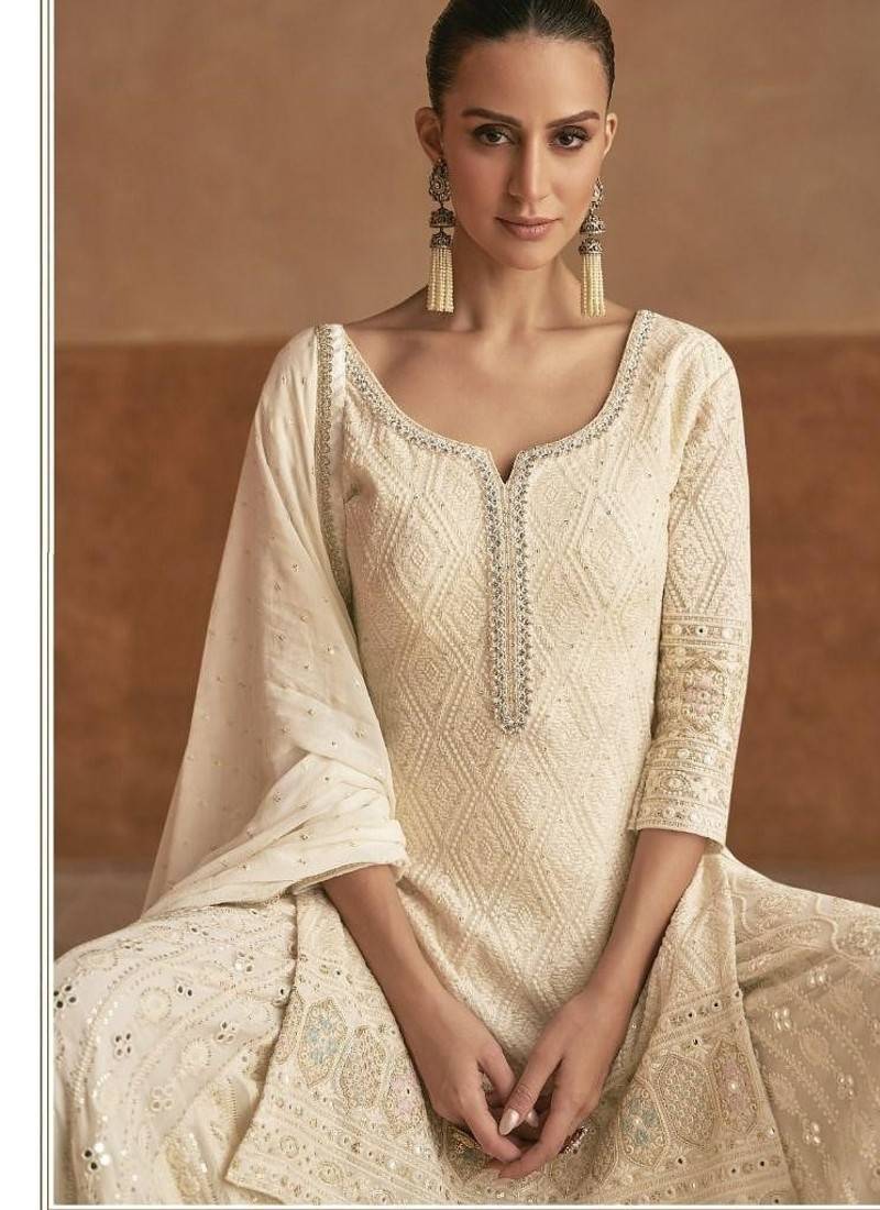 Off white real georgette wedding collection full stitched sharara suits free size upto 42