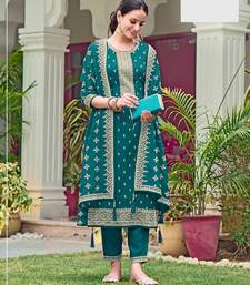 Peacock blue georgette semi stitched wedding suits