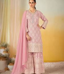 | Product Name | Pink Real Georgette Wedding Collection Full Stitched Sharara Suits Free Size Upto 42 | |