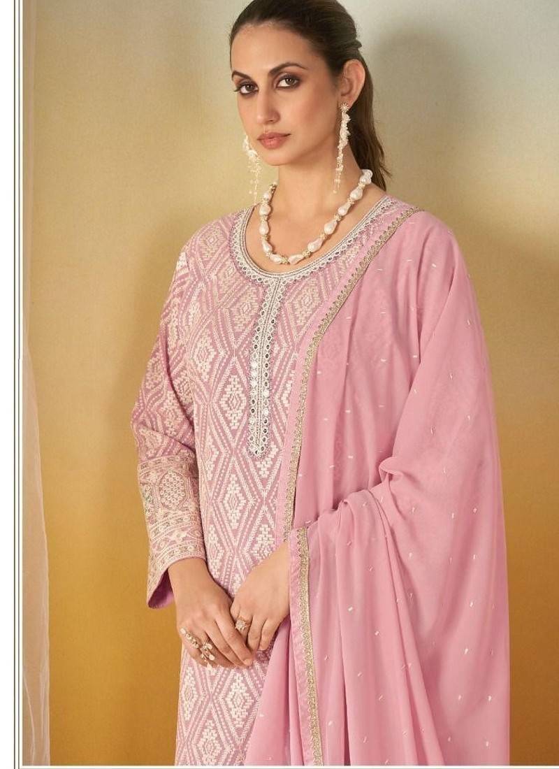 Pink real georgette wedding collection full stitched sharara suits free size upto 42