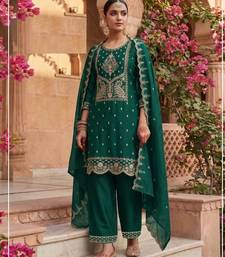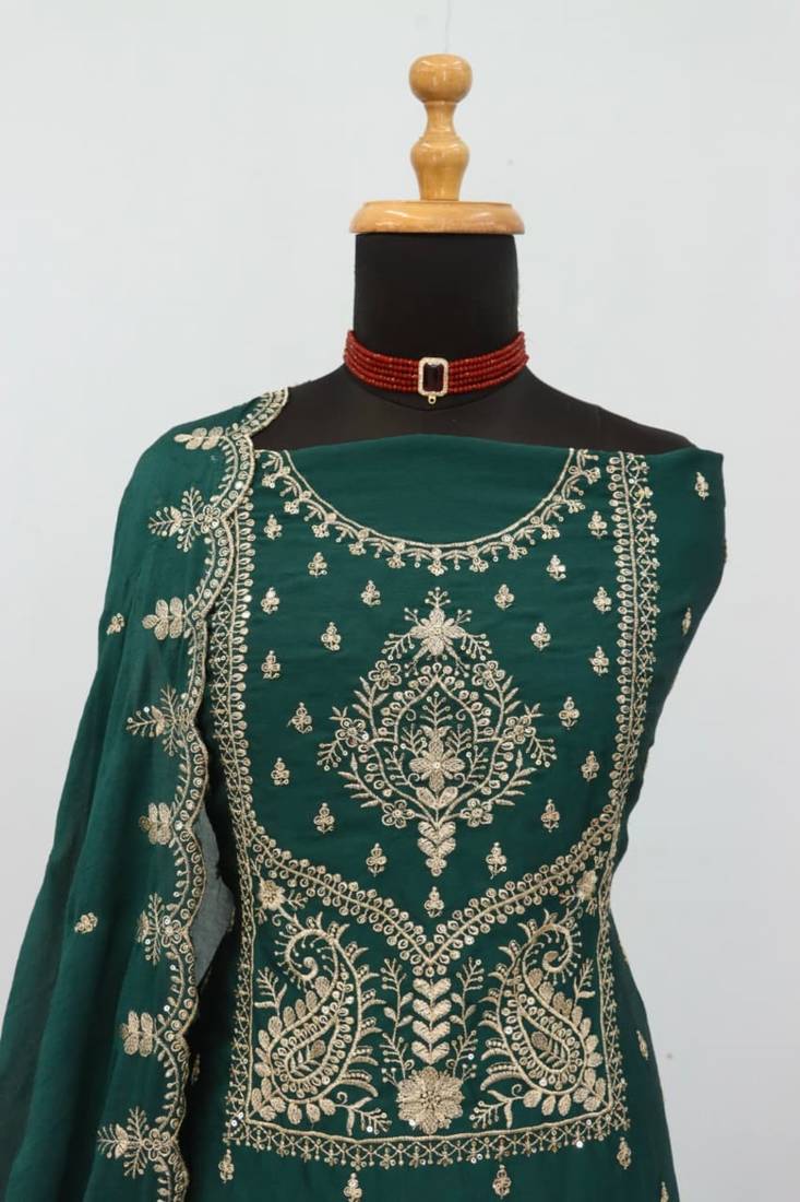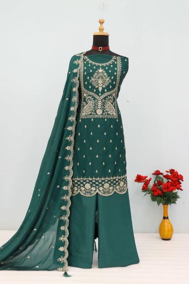 Teal crush heavy embroidery semi stitched suits