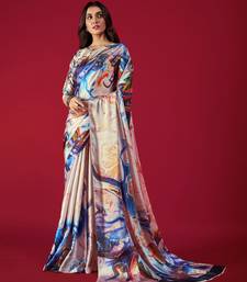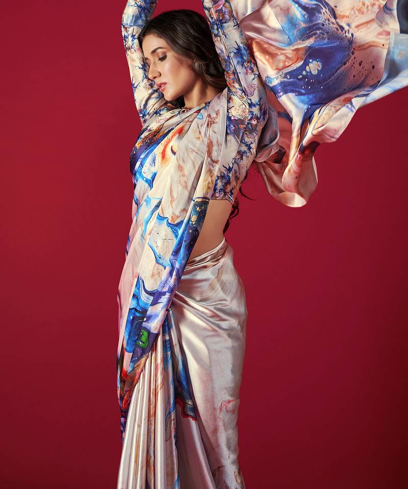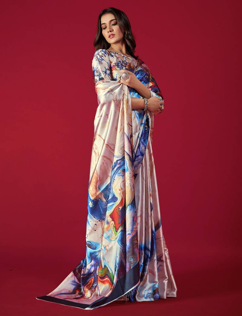 Printed satin saree with blouse piece