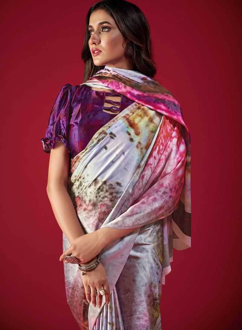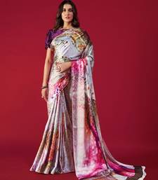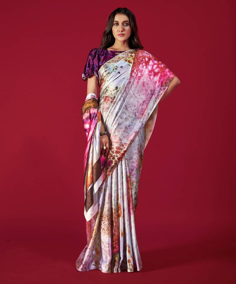 Printed satin saree with blouse piece