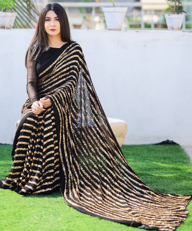 | • | Saree | : | Color- Black / Fabric- Faux Georgette |