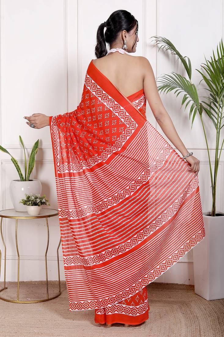 | • | Saree | : | Color- Orange / Fabric- Pure Cotton |