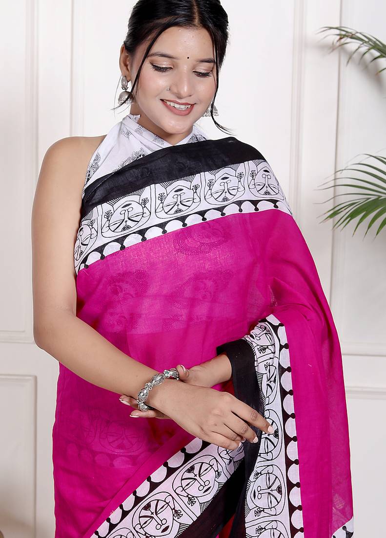 | • | Saree | : | Color- Pink / Fabric- Pure Cotton |