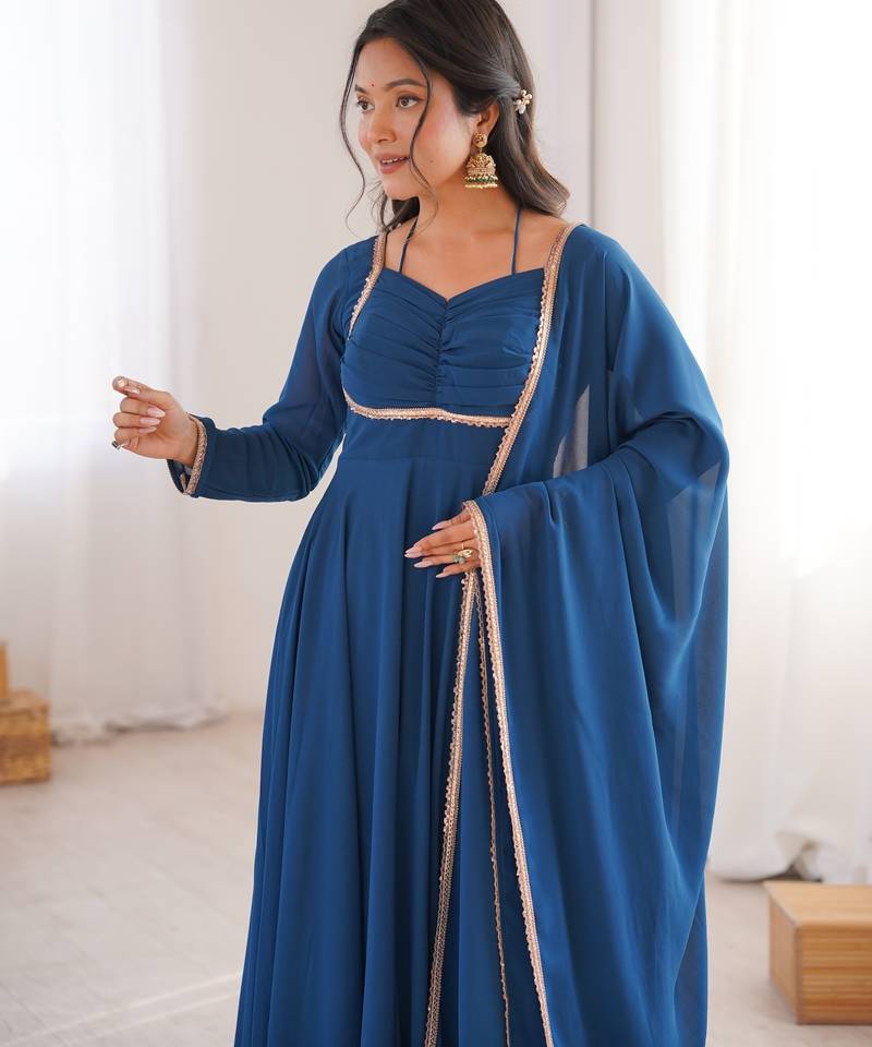 | Product Description | *Gown Fabric*:Heavy Pure Fox Blooming Georgette 7 Meter Plus Flare *Fancy Designer Yoke Dori Neck,Padded Attached,Full Sleeves* *Kurti Inner*: Micro Cotton Full Inner *Duppta*: 2.2 Meter Pure Fox Blooming Georgette Boader Fancy Lace Work *Length*: 52 53 Inch Approx *Size* :Xs(34) S(36) M(38) L(40) Xl(42) And Xxl(44) |