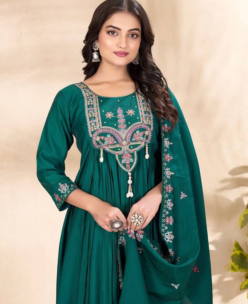 | • | Dupatta | : | Color- Teal / Fabric- Silk |