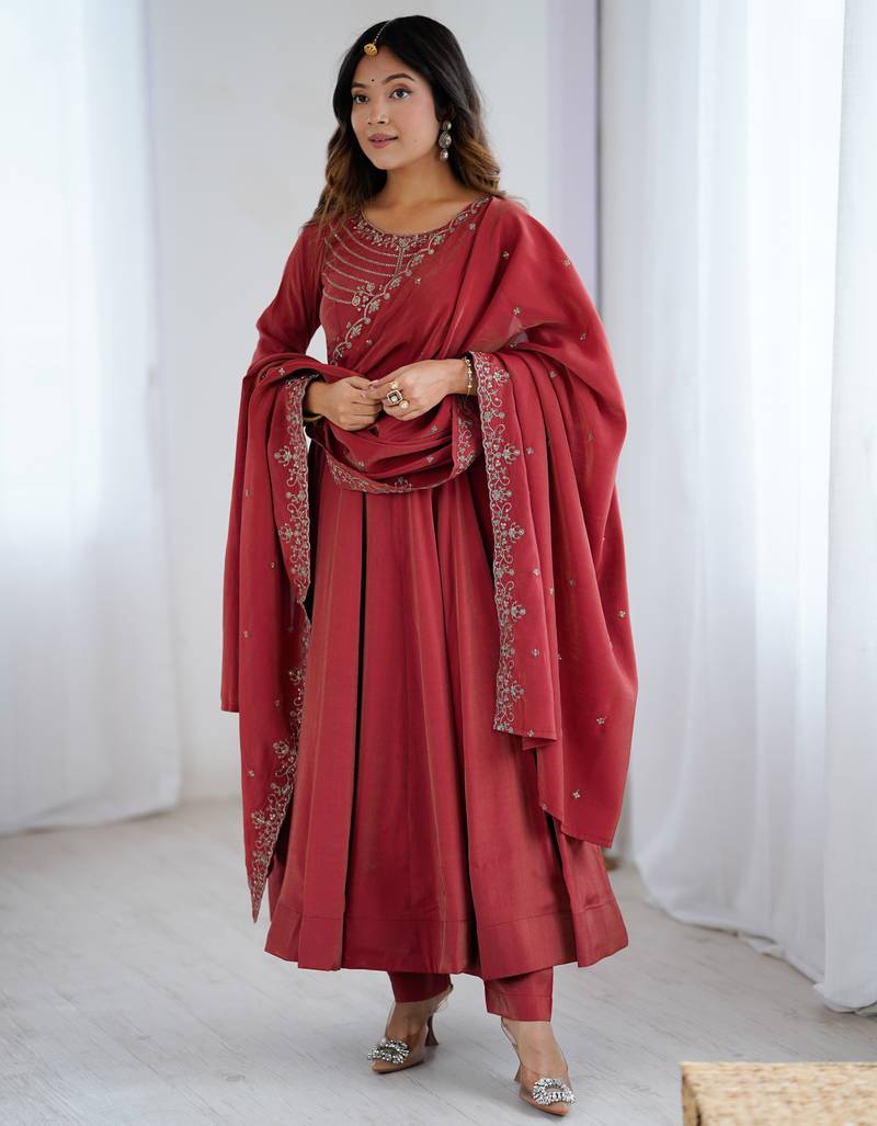 Designer anarkali suit with kurta ,pant , dupatta for women stitched