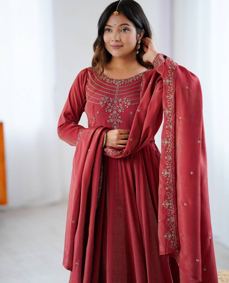 | • | Dupatta | : | Color- Maroon / Fabric- Silk |