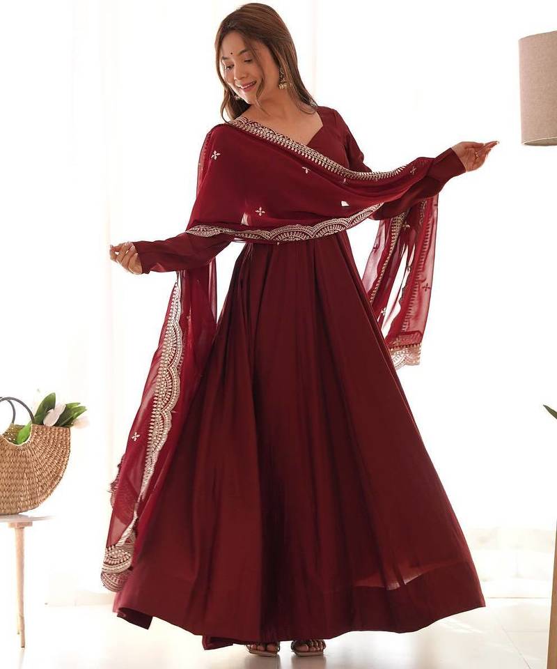 | • | Dupatta | : | Color- Maroon / Fabric- Georgette |