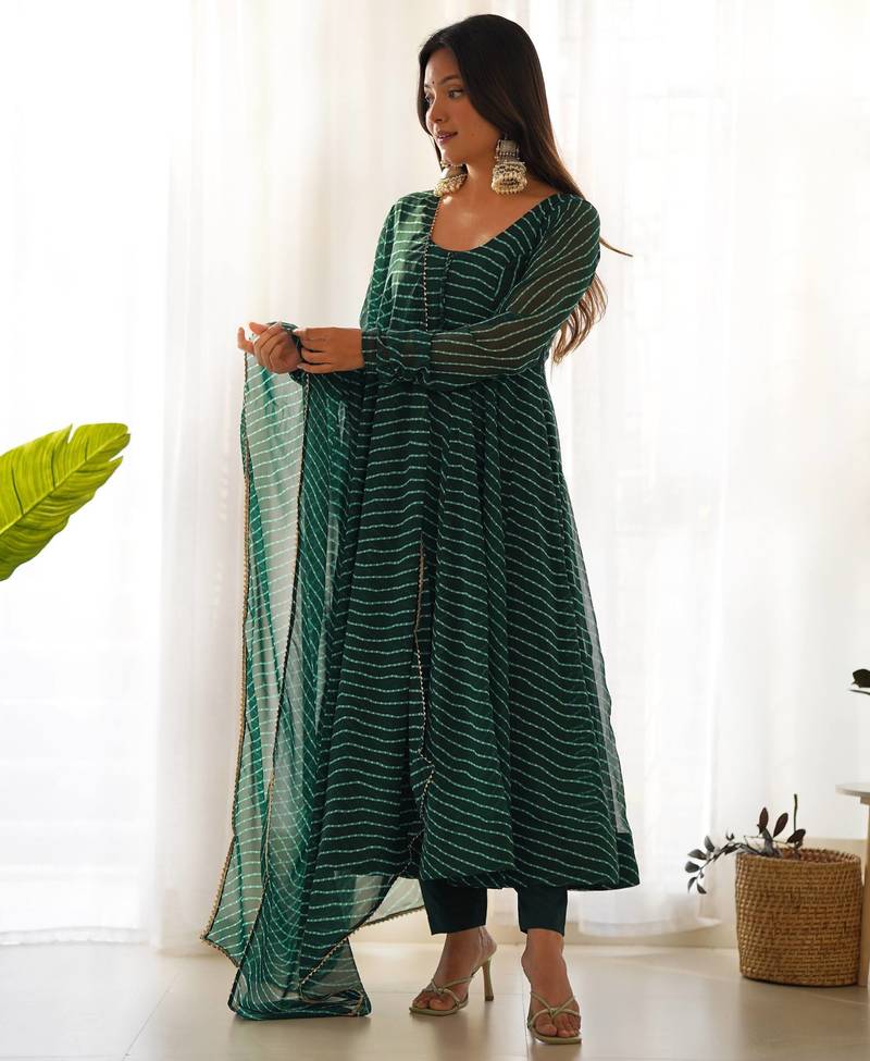 | Product Description | *Anarkali Fabric*: Heavy Pure Fox Georgette Laheriya Print *Fancy Neck Potli Button Design,Churidar Sleevs,Padded,Zipper Attached* *Anarkali Flair*: 4 Mtr Approx Fully Flair *Anarkali Inner*: Pure Micro Cotton Full Lining With Canvas Patta Attached Flair *Dupatta Work*: 2.3 Mtr Pure Fox Laheriya Print With Boader Triangle Lace Work *Duppta Width*: 27 Inch Shawl Style Duppta *Anarkali Length*:48 Inch Approx *Pent Fabric*:Pure Micro Cotton Silk Free Size Fully Sttiched *Size* :Xs(34) S(36) M(38) L(40) Xl(42) And Xxl(44) |