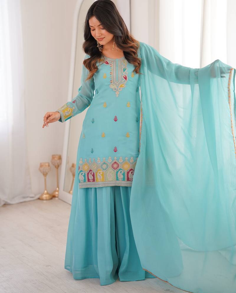 Designer sharara suit with kurta sharara dupatta for women stitched