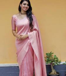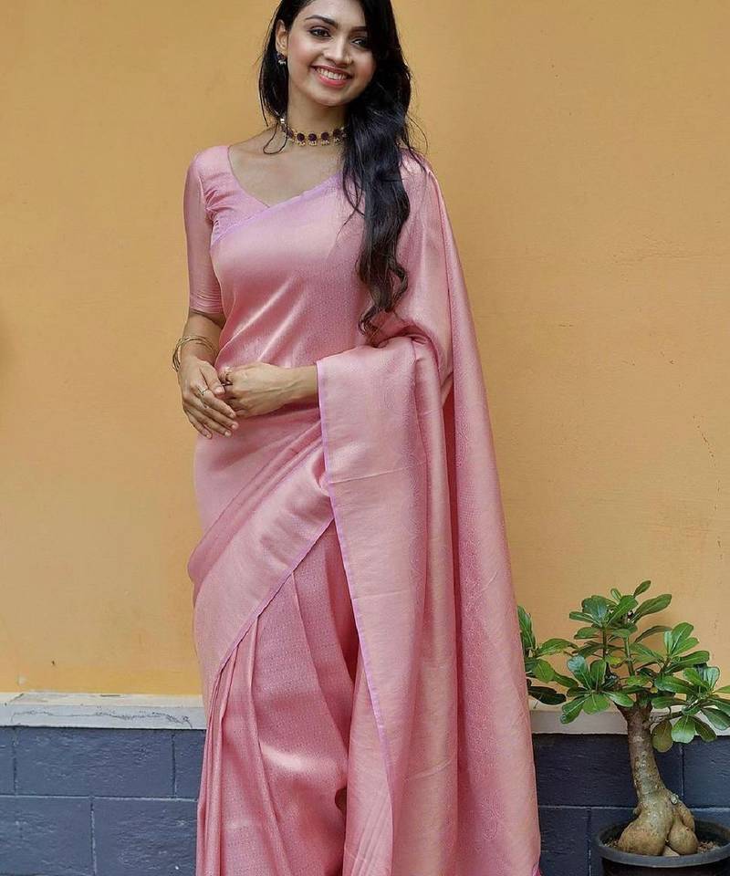 Baby pink soft silk blend banarasi jacuard work designer party wear saree with unstitched blouse piece
