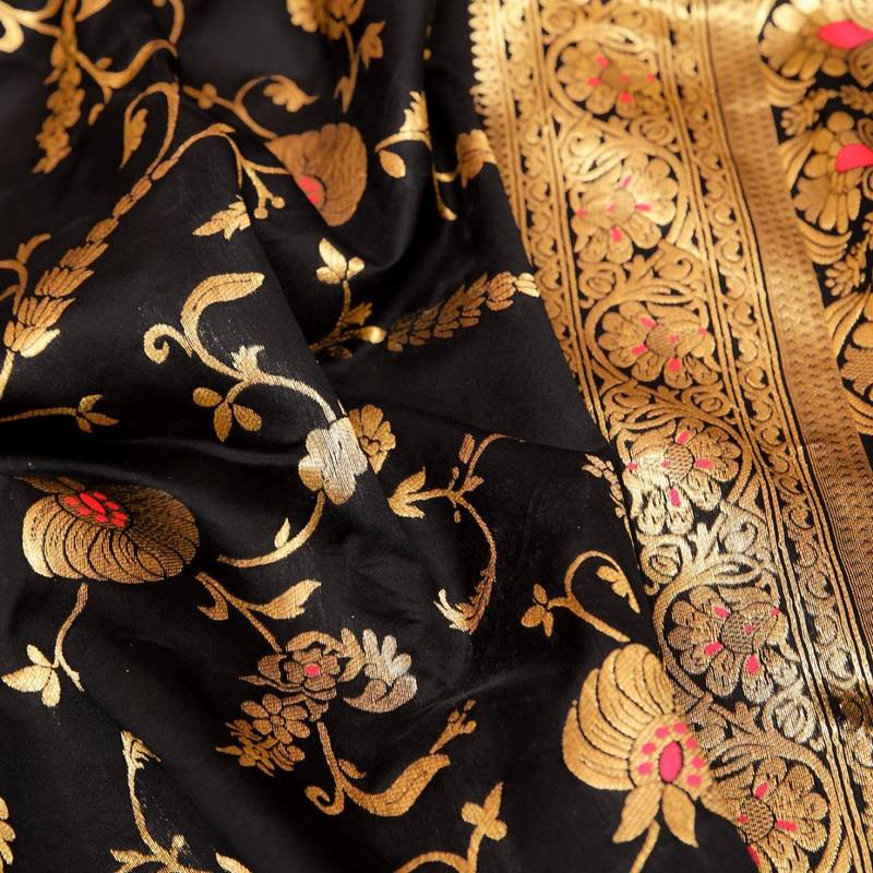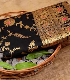 Black soft silk blend banarasi jacuard work designer party wear saree with unstitched blouse piece