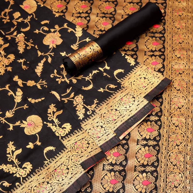 | Product Name | Black Soft Silk Blend Banarasi Jacuard Work Designer Party Wear Saree With Unstitched Blouse Piece | |