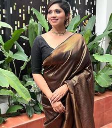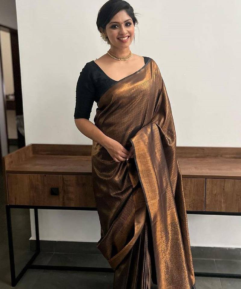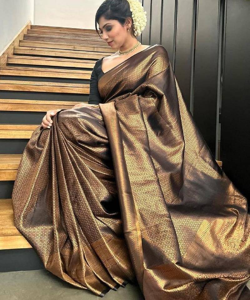 Black soft silk blend banarasi jacuard work designer party wear saree with unstitched blouse piece