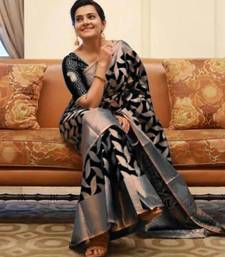 Black soft silk blend banarasi jacuard work designer party wear saree with unstitched blouse piece