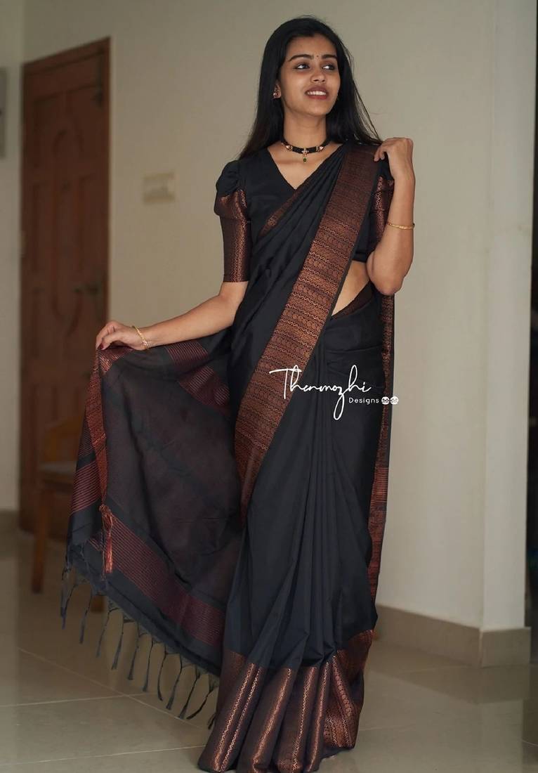 | • | Saree | : | Color- Black / Fabric- Silk Blend |