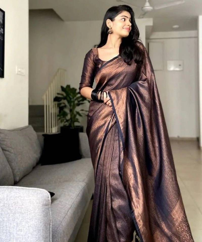 Black soft silk blend banarasi jacuard work designer party wear saree with unstitched blouse piece