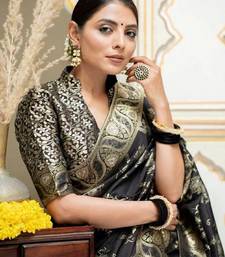 Black soft silk blend banarasi jacuard work designer party wear saree with unstitched blouse piece