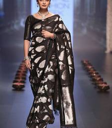 Black soft silk blend banarasi jacuard work designer party wear saree with unstitched blouse piece