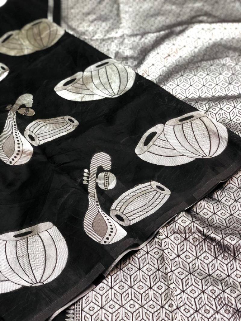 | Product Name | Black Soft Silk Blend Banarasi Jacuard Work Designer Party Wear Saree With Unstitched Blouse Piece | |