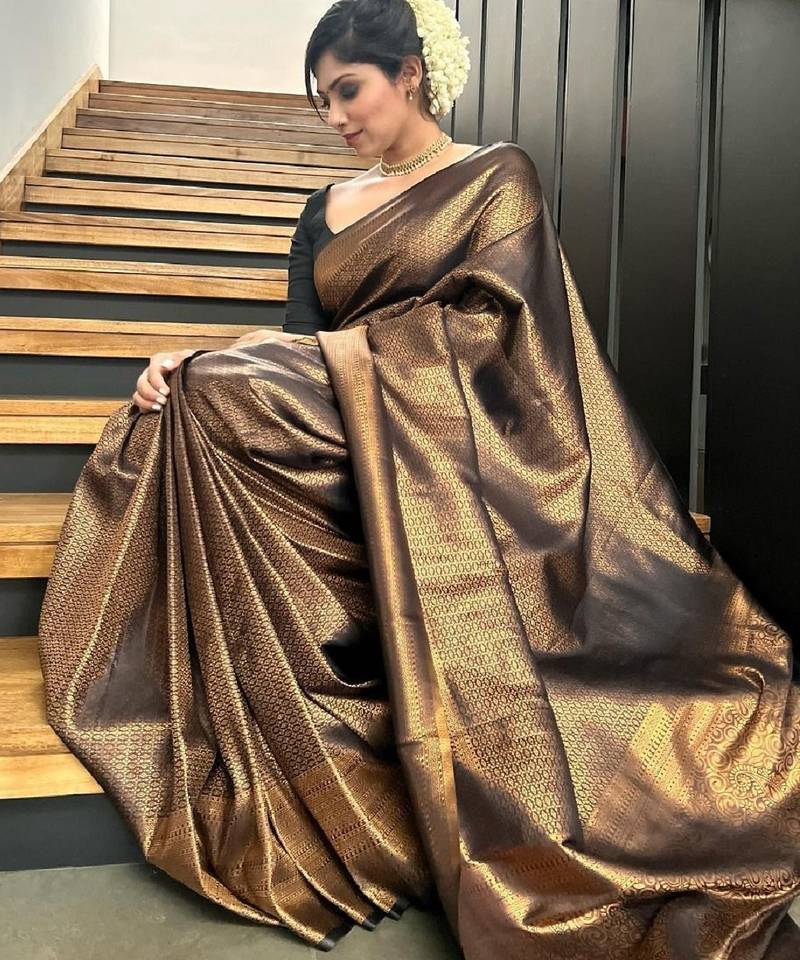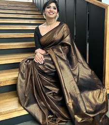 Black soft silk blend banarasi jacuard work designer party wear saree with unstitched blouse piece