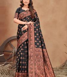 Black soft silk blend banarasi jacuard work designer party wear saree with unstitched blouse piece