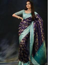 Blue rama soft silk blend banarasi jacuard work designer party wear saree with unstitched blouse piece