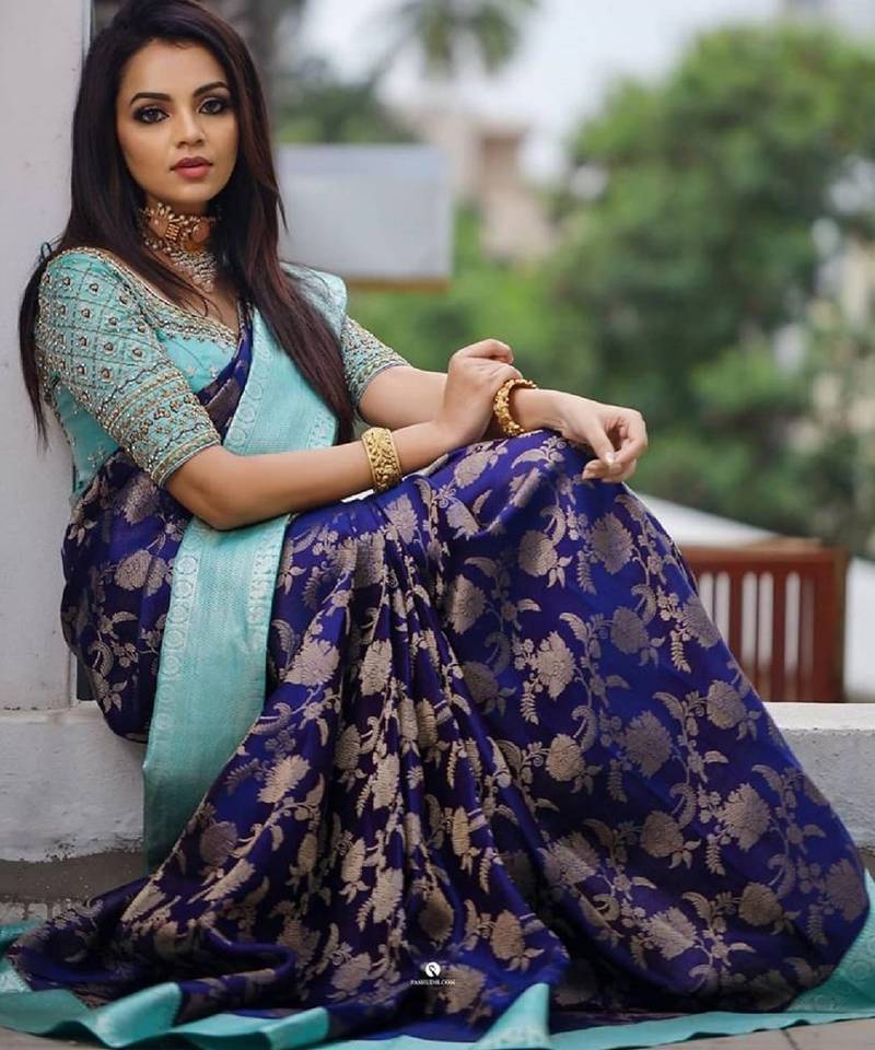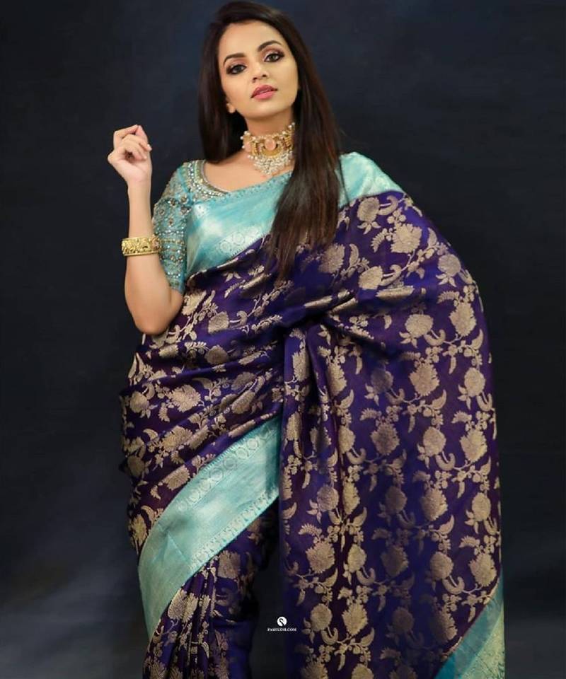 | Product Name | Blue Rama Soft Silk Blend Banarasi Jacuard Work Designer Party Wear Saree With Unstitched Blouse Piece | |