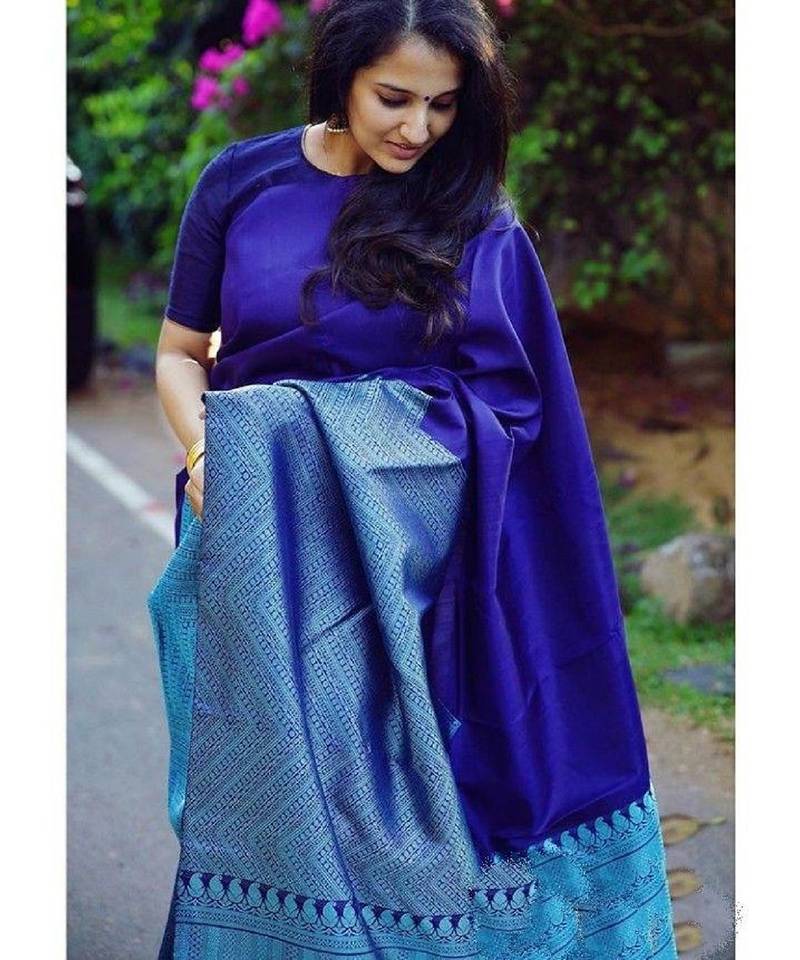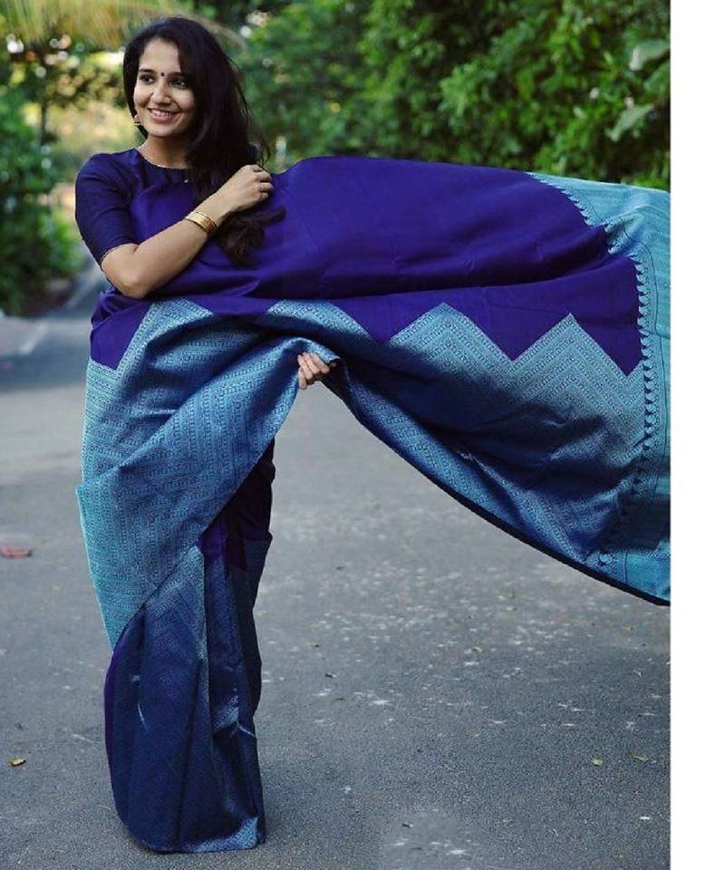 Blue rama soft silk blend banarasi jacuard work designer party wear saree with unstitched blouse piece