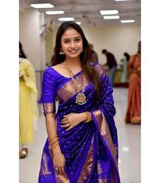 | • | Saree | : | Color- Blue / Fabric- Silk Blend |