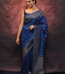 Blue soft silk blend banarasi jacuard work designer party wear saree with unstitched blouse piece