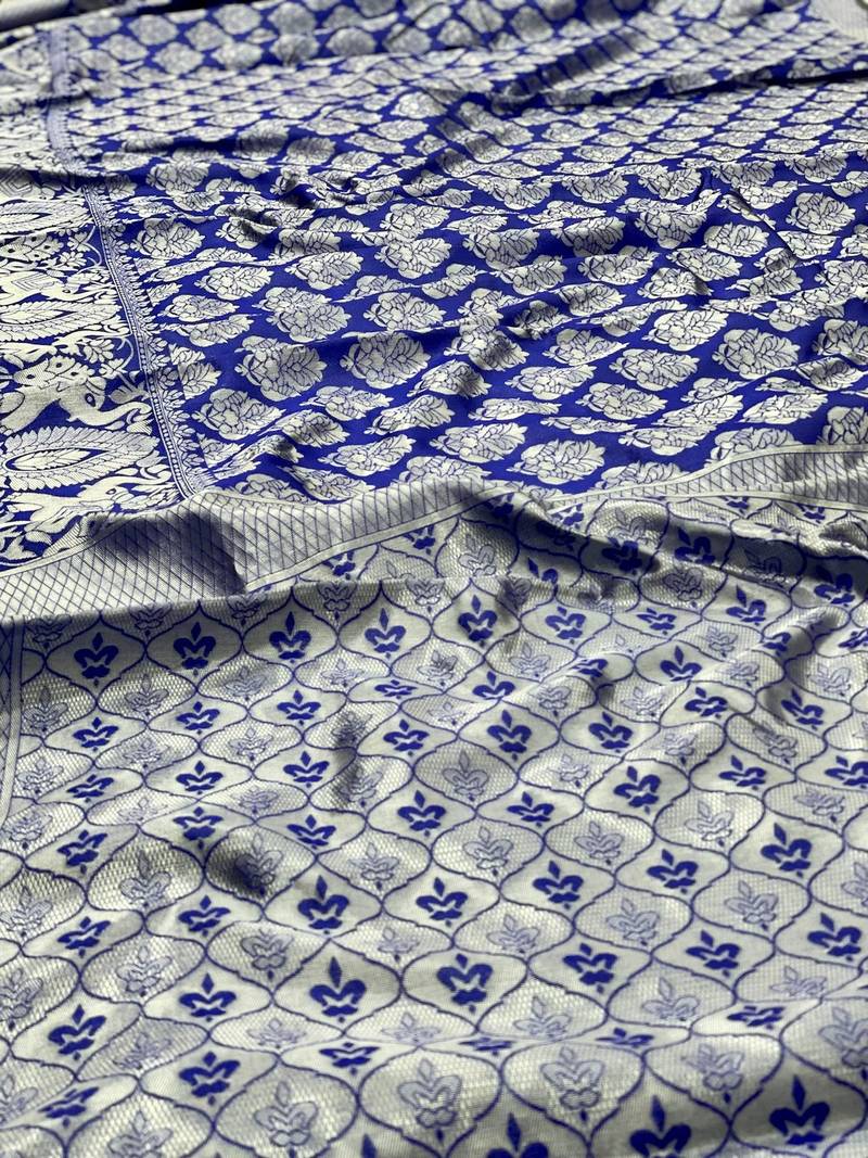 | Product Name | Blue Soft Silk Blend Banarasi Jacuard Work Designer Party Wear Saree With Unstitched Blouse Piece | |