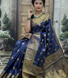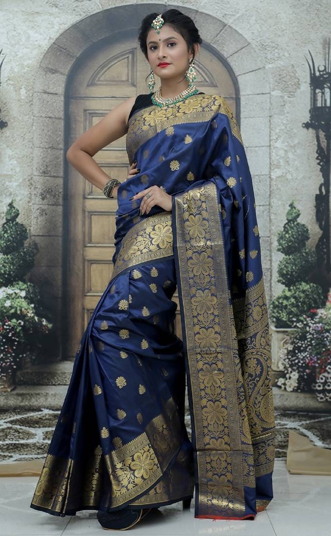 Blue soft silk blend banarasi jacuard work designer party wear saree with unstitched blouse piece