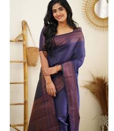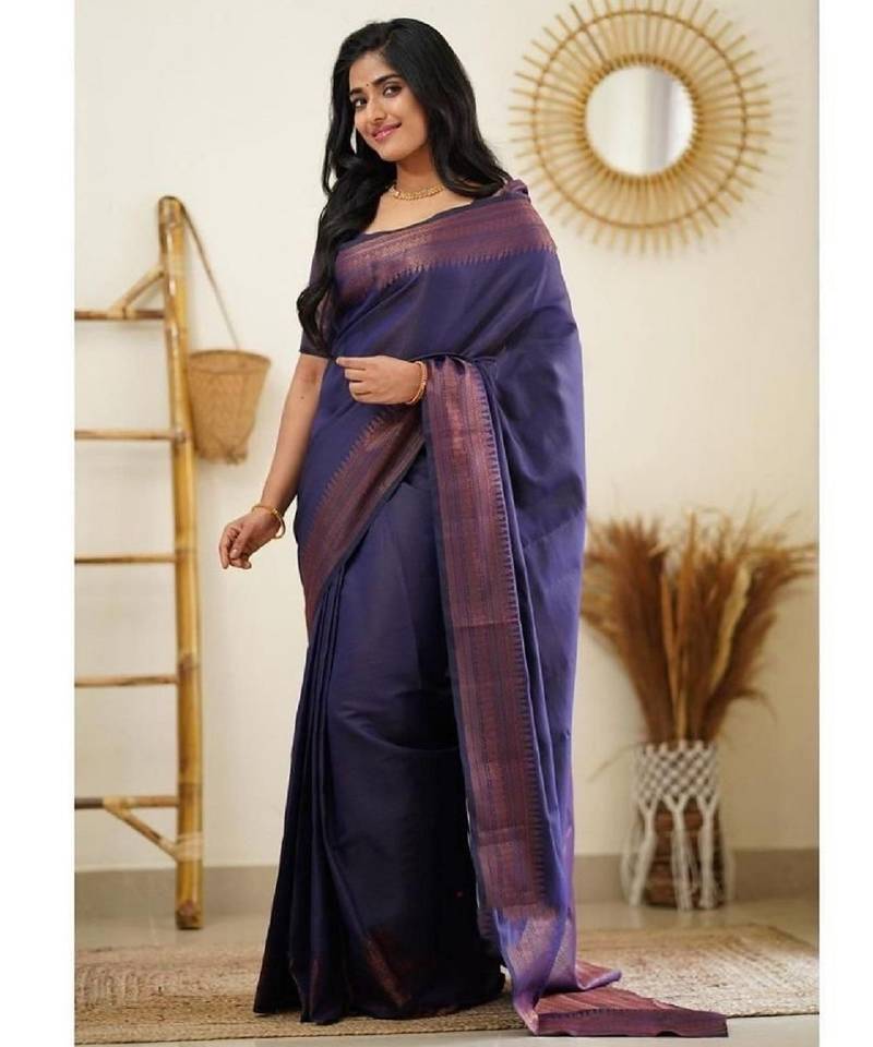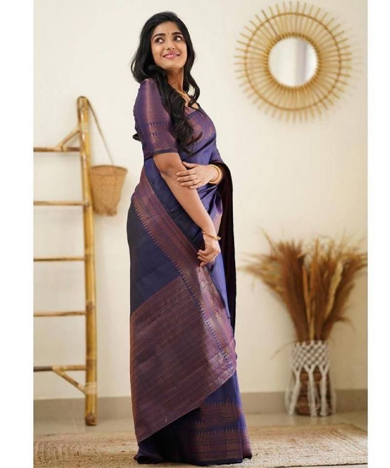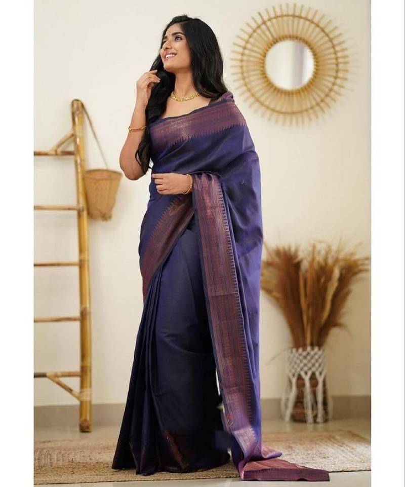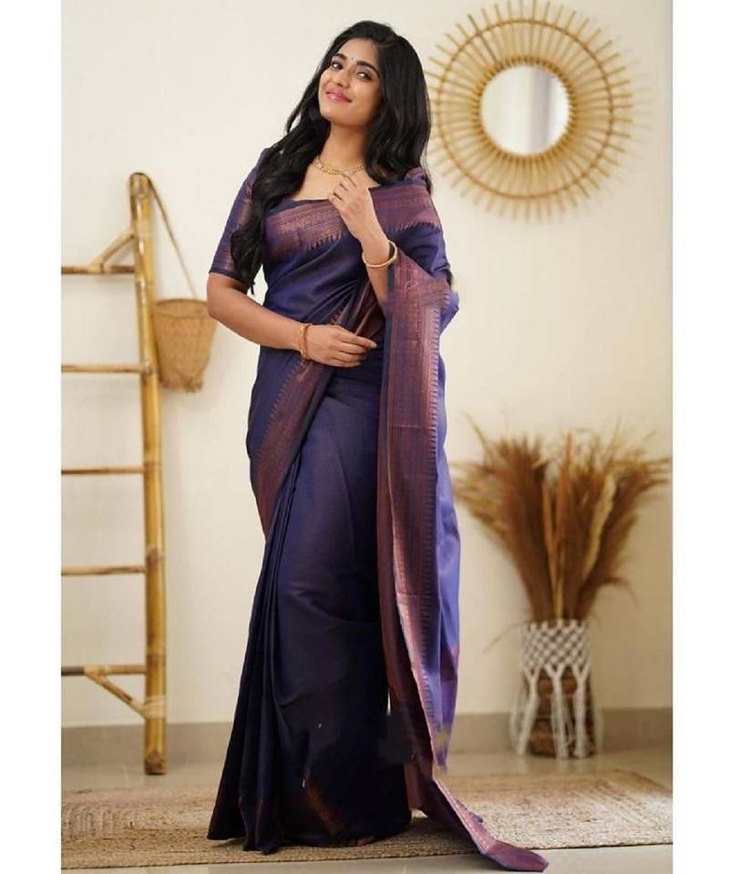 Blue soft silk blend banarasi jacuard work designer party wear saree with unstitched blouse piece